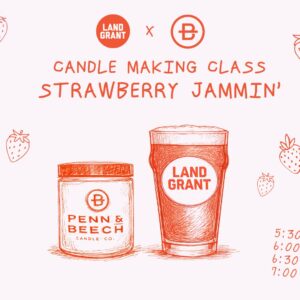 Create a candle that’s as sweet as Land-Grant x Jeni’s Strawberry Jam weekend! In this hands-on workshop, you’ll design your own custom label, blend seasonal fragrance oils (think fresh, fruity, and summer-ready), and pour a 9oz candle from start to finish with guidance along the way. While your candle sets, kick back with a beer, […]