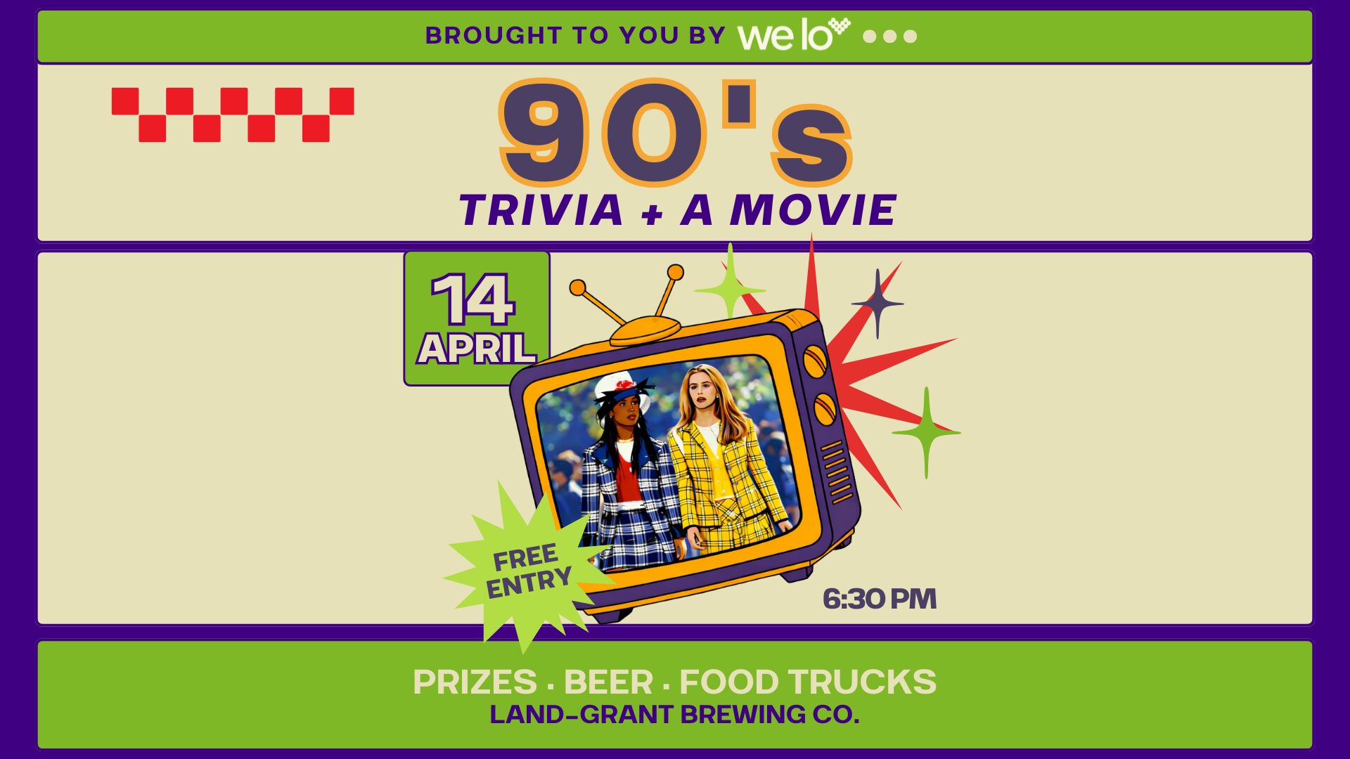 Join us for a throwback night of 90s Trivia + a classic 90s movie, brought to you by @joinwelo, Columbus’s newest internet provider.