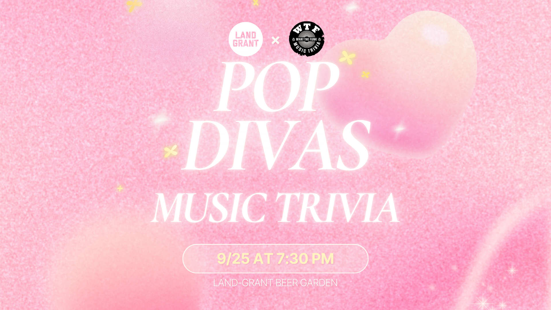 It’s serving glitter, high notes, and dance-floor anthems. We’re celebrating the queens of pop — from power ballads to club bangers — join us in the Land-Grant Beer Garden on Thursday, September 25th at 7:30 PM for Pop Divas Music Trivia! 👑 🎤