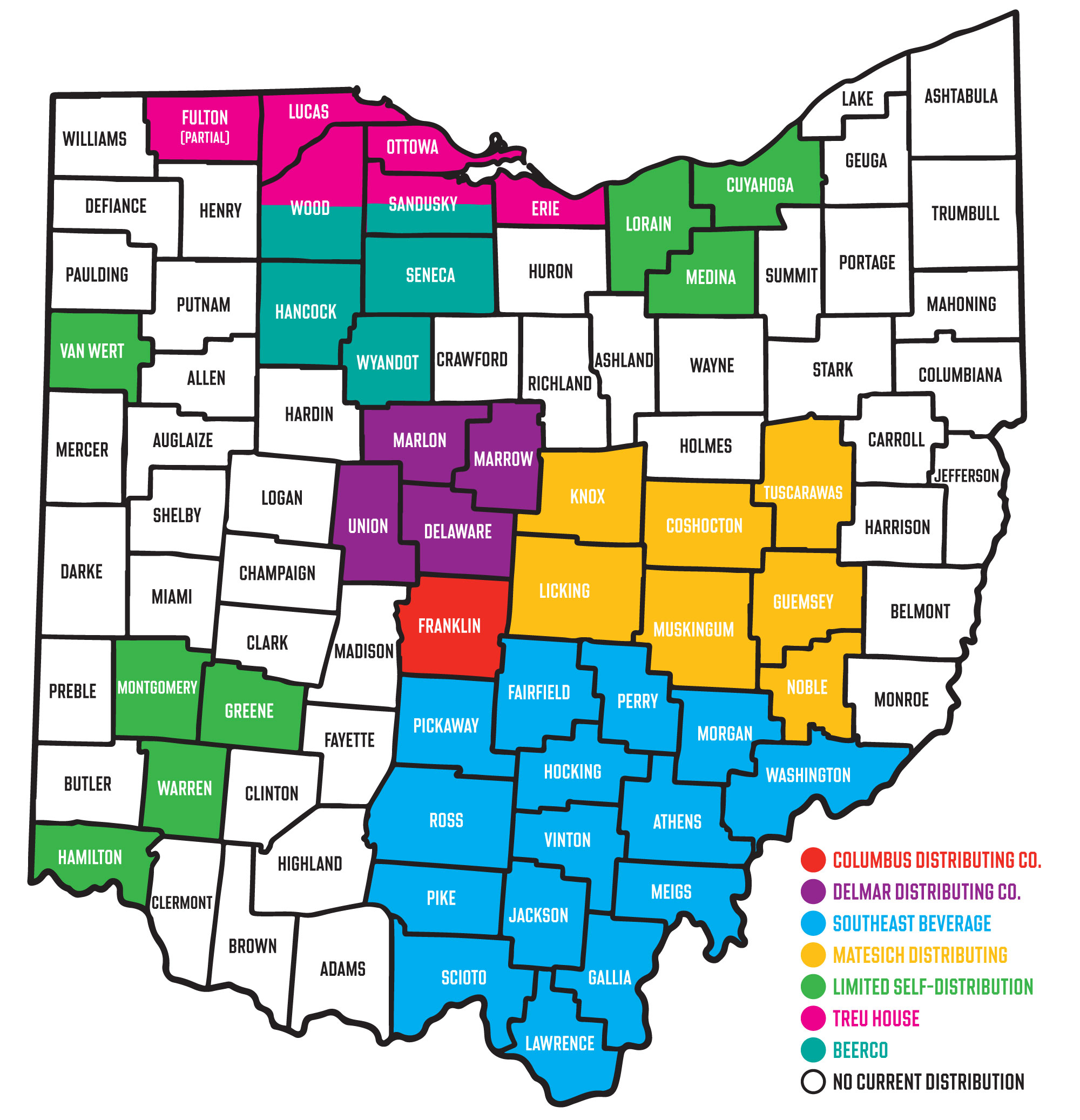 Our beers are distributed by Matesich Distributing in the counties East of Columbus in both cans and kegs. Accounts can order beer directly through their Matesich rep.