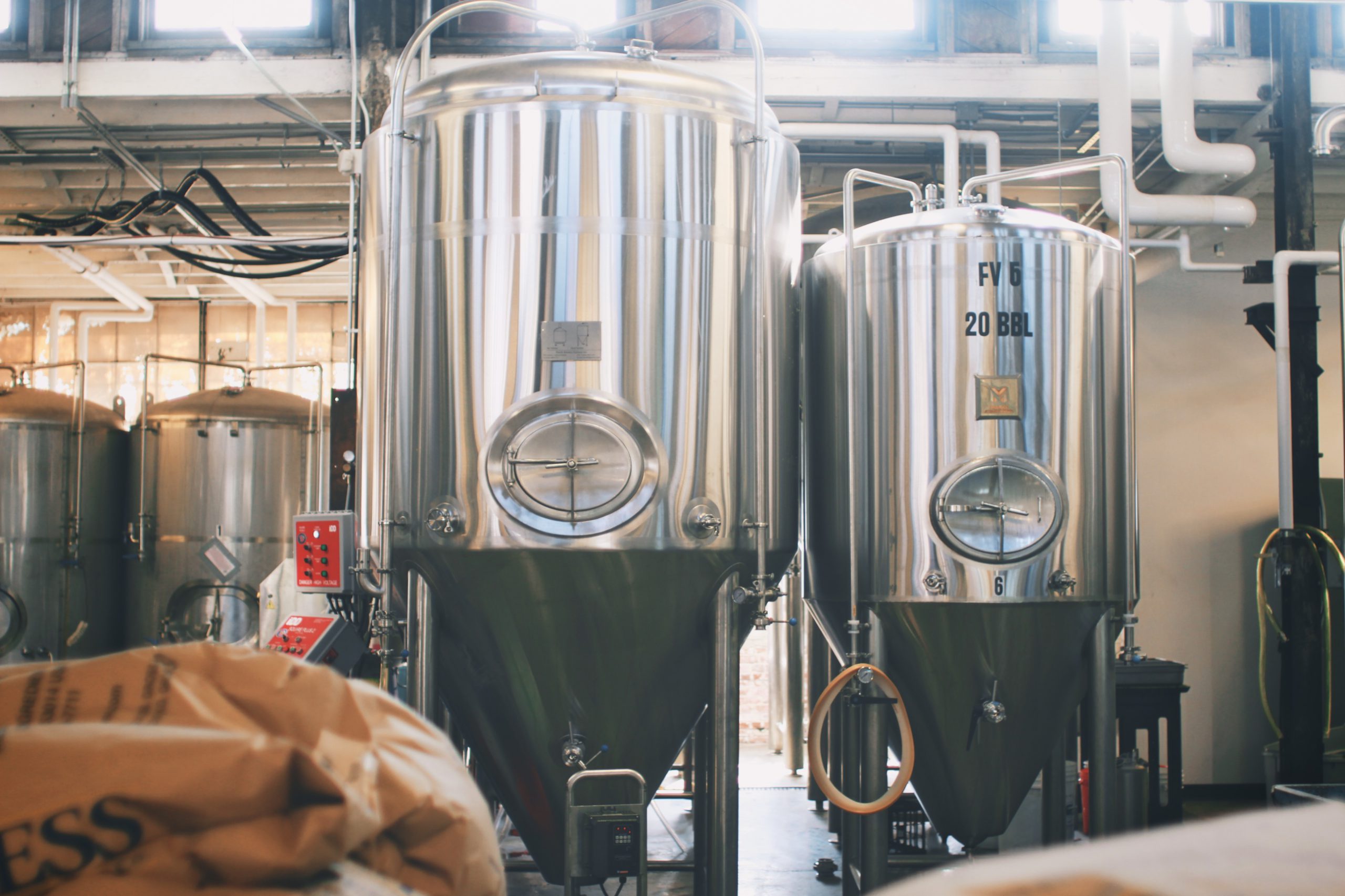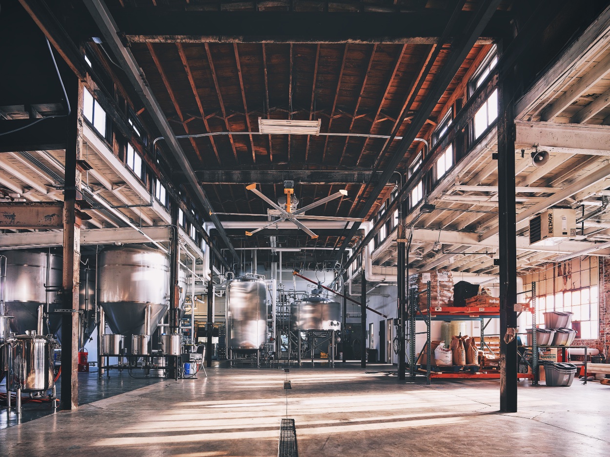WE’RE PROUD TO CALL THE 12,000-SQUARE-FOOT HISTORIC BUILDING AT 424 W. TOWN STREET IN EAST FRANKLINTON HOME. Its huge production floor (which once built elevators and track-systems for newspaper production facilities) is home to our brand brewing facility, churning out 10-15,000 BBLs of beer annually.