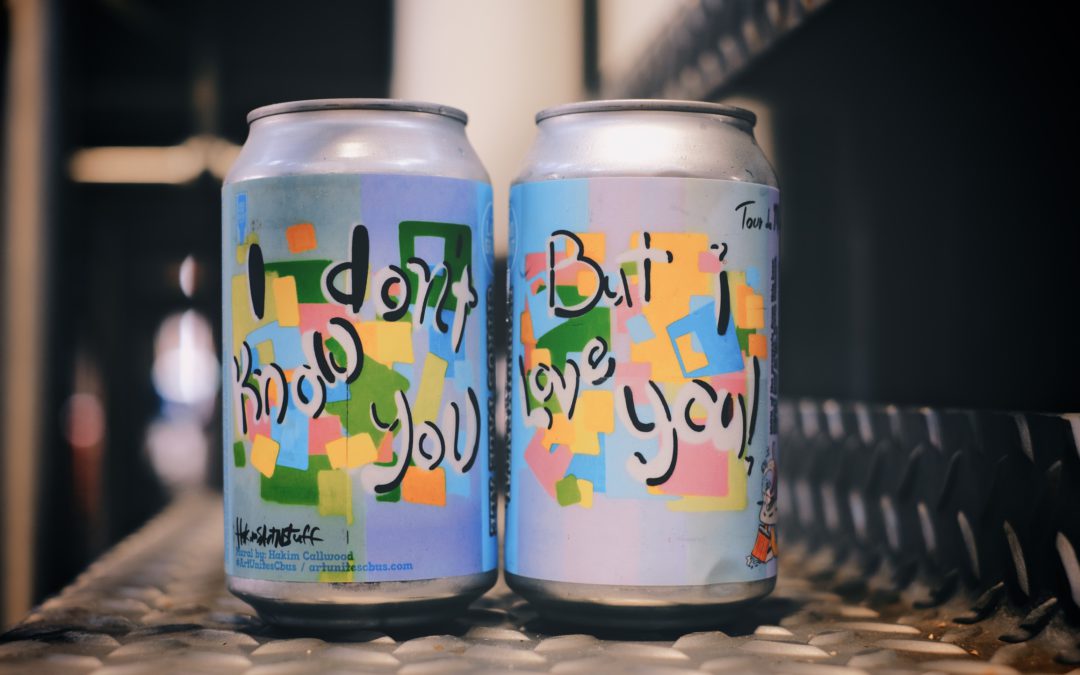 We partnered up with Hakim on a limited-edition experimental citrus pale ale beer, with the label featuring one of his most popular and impactful murals – “I Don’t Know You, But I Love You”. Releasing on Friday, April 9th, 100% of the proceeds from the beer will go to supporting his nationwide Tour De Mural initiative.